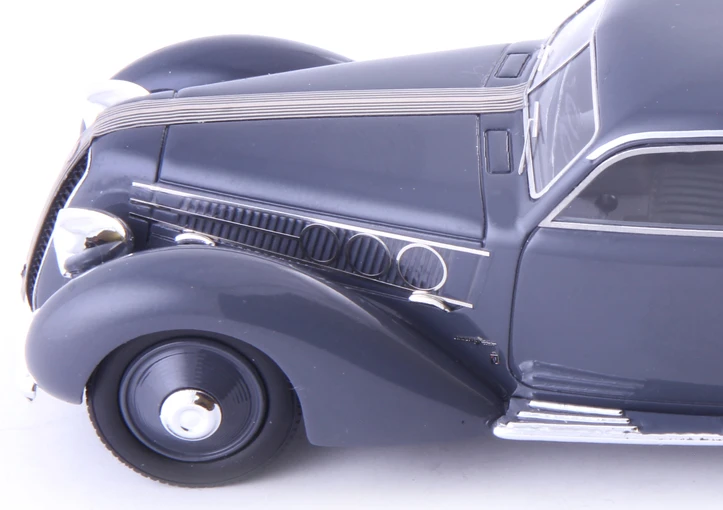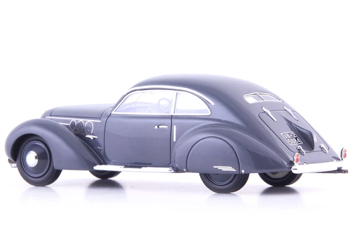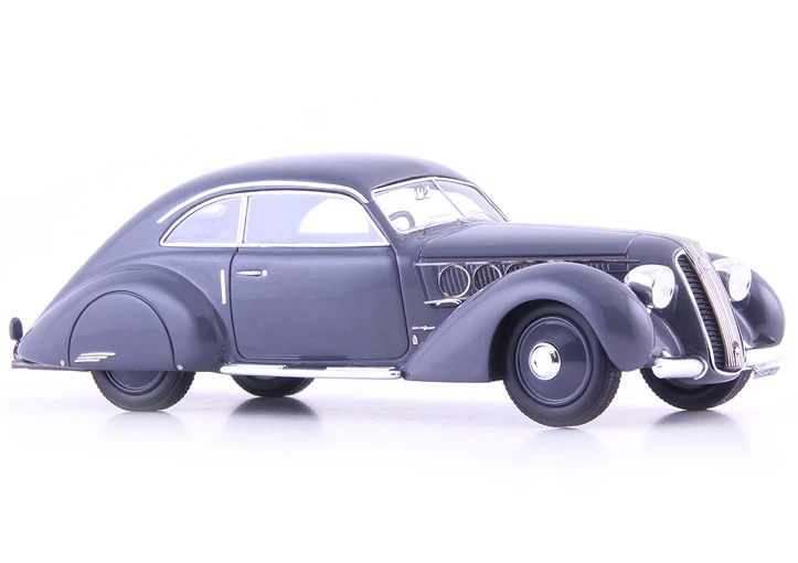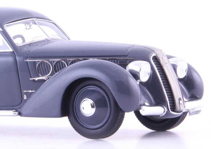 Eines davon wurde auch von den Stylisten bei Pininfarina geformt. Dieses Unikat wurde auf der Messe in Mailand im Jahre 1937 dem Publikum präsentiert. In der Linienführung erkannten seinerzeit die auf dem aktuellen Stand der Technik befindlichen Zeitgenossen, die Umsetzung einer halbstromlinienförmigen Berlinetta-Karosse. Erkennbar war diese an dem aerodynamisch auslaufenden Heck mit den verschalten Hinterrädern und der kleinen Finne. Halbstromlinie wurde diese Form deswegen genannt, weil sich an der Front noch die bewährte Form wiederfand, die keinerlei ausgeprägte Windschnittigkeit erkennen ließ. So wirbelte der Fahrtwind um die freistehenden Scheinwerfer und die abgerundeten Kotflügel der Vorderräder herum.